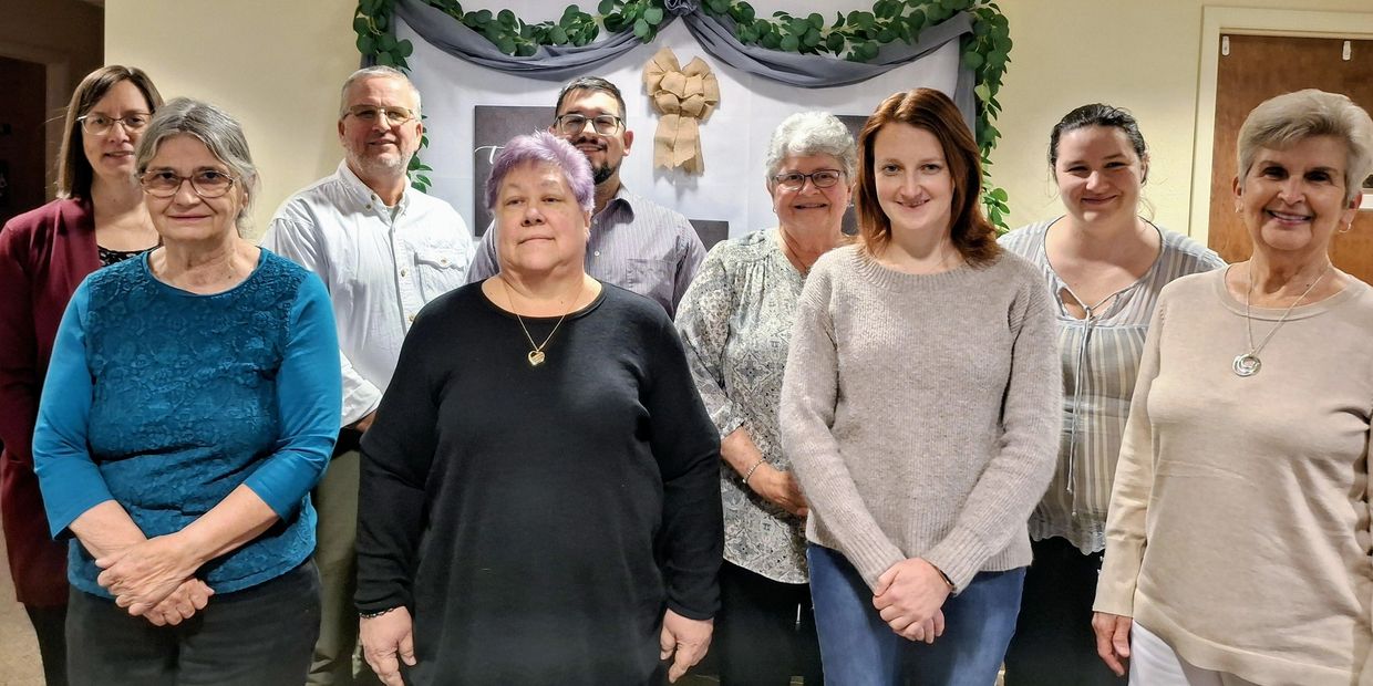 Back: Kim Kistler; Mike Hunsicker, President; Pastor Josh Nemeth; Charlene Miller; Hannah Miller, Treasurer